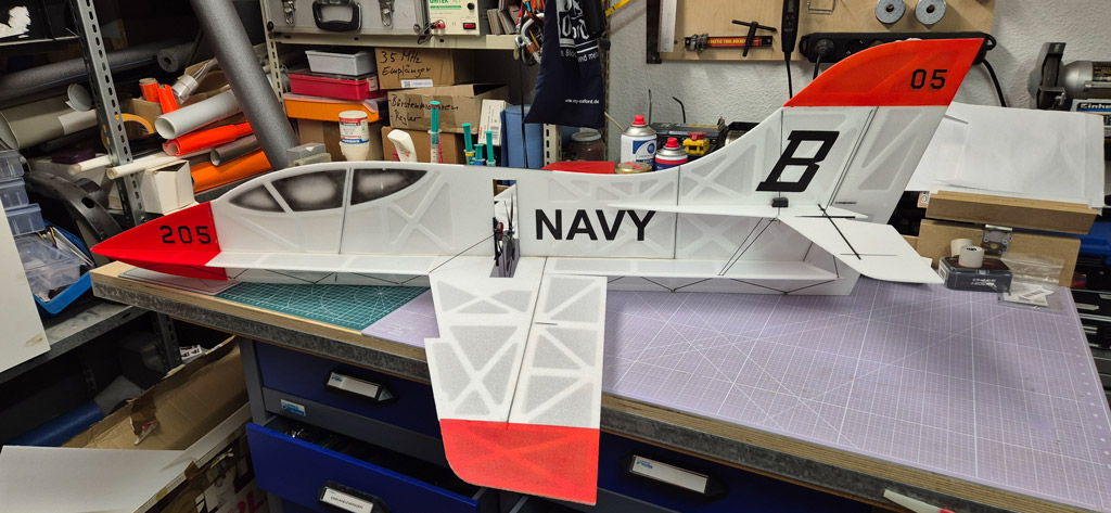 Heute ist er endlich fertig geworden. Der Erstflug findet dann nächsten Sonntag in der Halle statt. In der kommenden Woche werde ich noch ein paar SMD LEDs zur Beleuchtung anbringen.