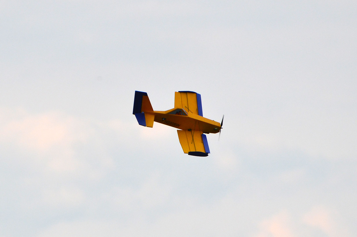 Der Erstflug verlief unspektakulär. Der angegebene Schwerpunkt von 65mm ist etwas zu weit hinten. Durch Verschieben des Fahrwerks habe ich ihn auf 55mm eingestellt. Das einzige Problem, das auftrat, war im Rückenflug. Da wurde der BT wohl etwas zu schnell und ein Vorflügel ist gebrochen. Ich bin dann gelandet, habe beide Vorflügel entfernt und bin dann ohne Vorflügel weiter geflogen. Einziger Unterschied: Der BT ist dann doch deutlich schneller.