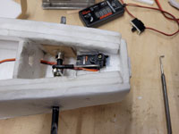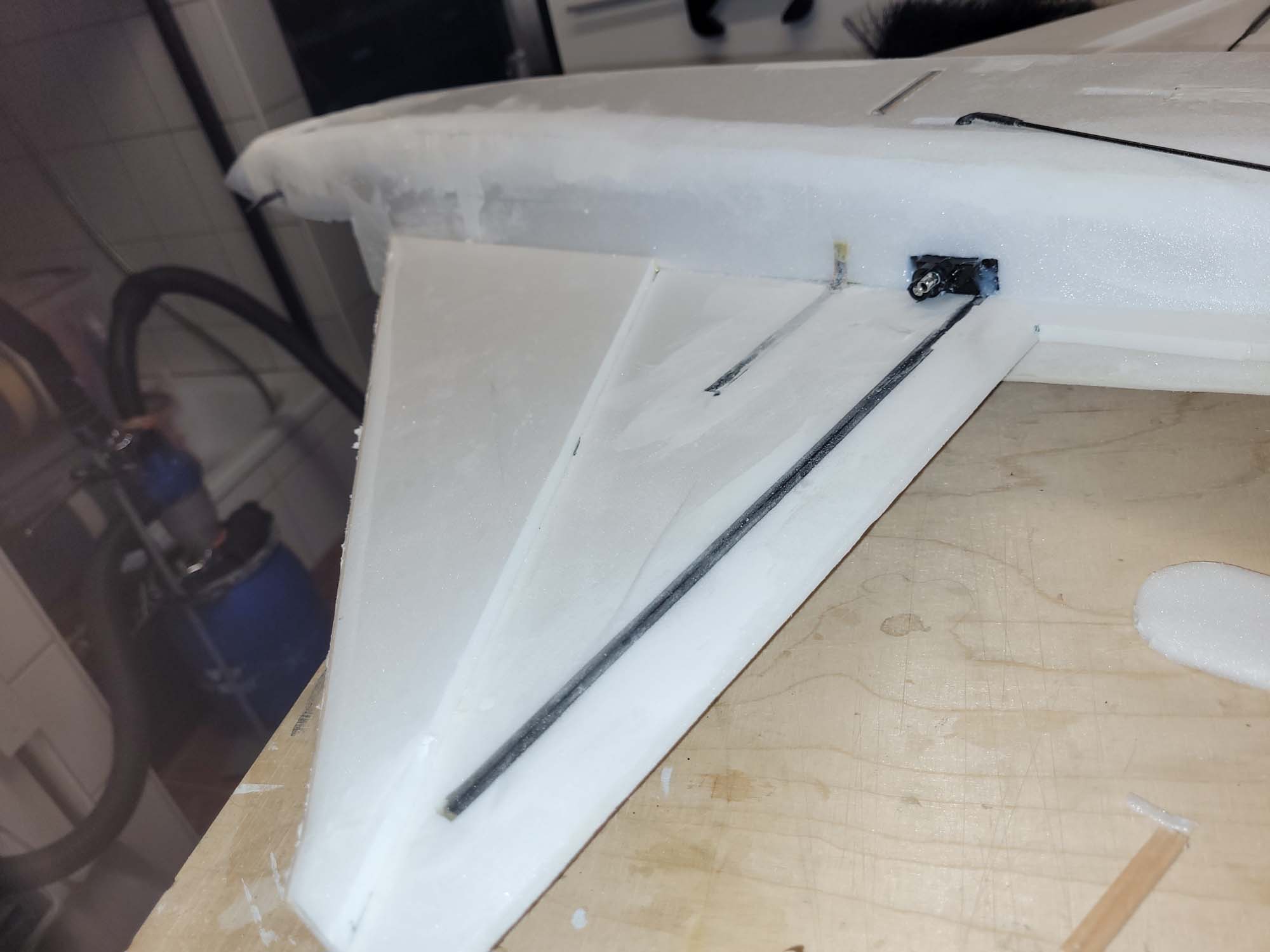 - Die Flaperon Servos habe ich oberhalb der Tragflächen angebracht, da ich schon schlechte Erfahrungen mit unterhalb der Flächen angebrachten Servos bei meiner F-16 gemacht hatte (bei Landungen im Gras reißen die Anlenkungen häufig ab).