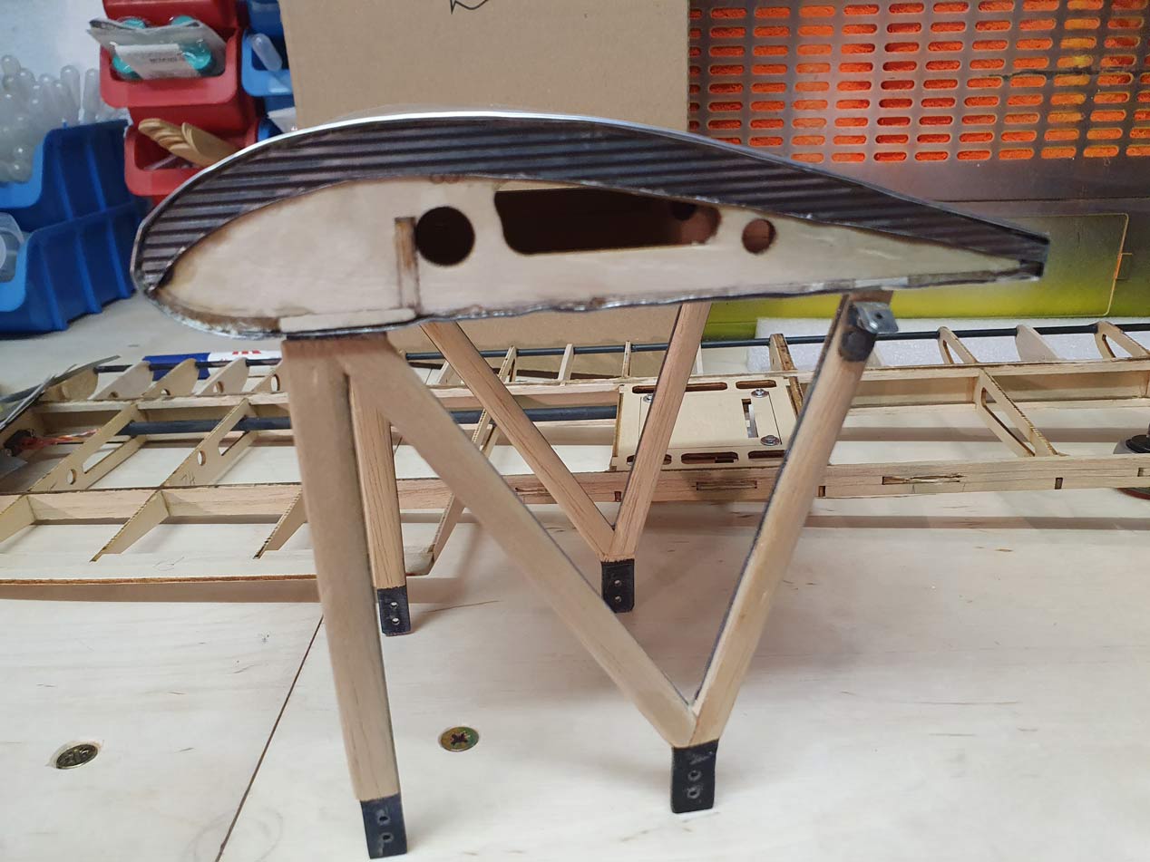 - Die Flächenstreben und die Streben des Baldachins wurden auch mit Balsa profiliert.