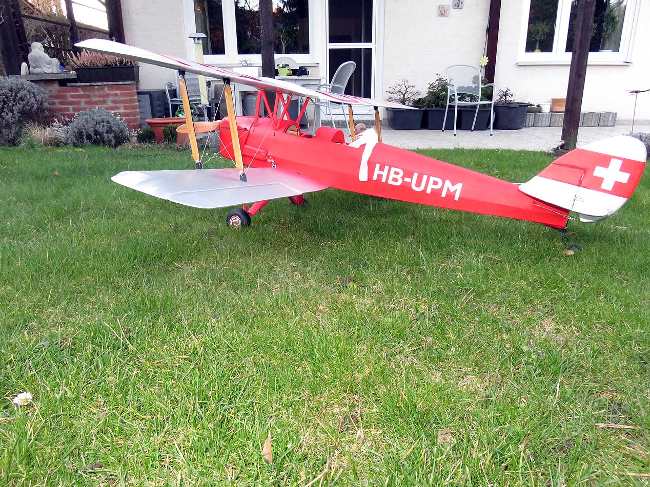 Die Tiger Moth von Pichler entsprach meinen Kriterien voll und ganz.Der Bausatz ist sehr günstig und von relativ guter Qualität, wenngleich auch einige Dinge nicht ganz passen (China halt...). Z.B. sind die Randbögen im Plan einfach verkehrt herum eingezeichnet, was das typische Flugbild der Tiger Moth doch erheblich stört. Genauso das Fahrwerk. Auch dieses ist um 180° verdreht eingezeichnet. O.K. - die Randbögen machten doch etwas mehr Arbeit beim Umbau, das Fahrwerk kann aber einfach gedreht werden. Auch die Verspannung "schrie" nach einer Verbesserung, wie man auf den Bildern sehen kann.