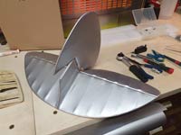 - Bei den Tragflächen habe ich zusätzliche Halbrippen aus 2mm Balsa eingebaut, um das Aussehen mehr dem Original anzugleichen.