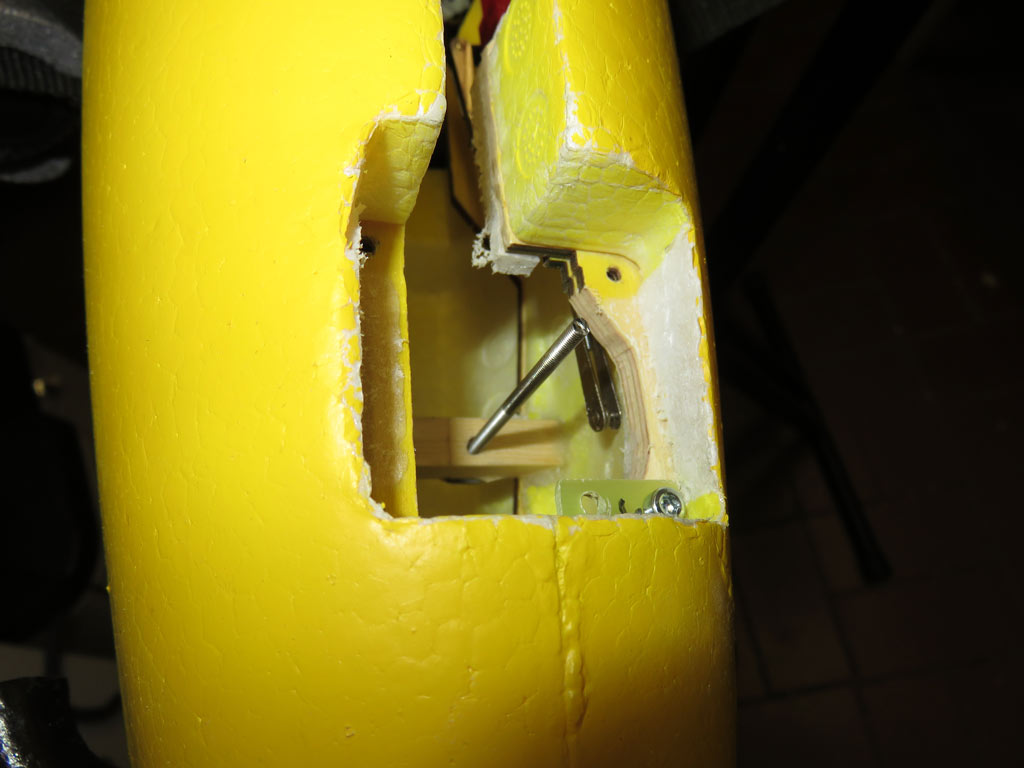 Ich hatte noch ein Ersatzfahrwerk von meinem abgestürzten Eurofighter im Keller liegen und habe dieses dann eingebaut. Allerdings erforderte das viel Hirnschmalz und einiges an Arbeit, um es in der Tucan einzubauen. Siehe Bilder unten.